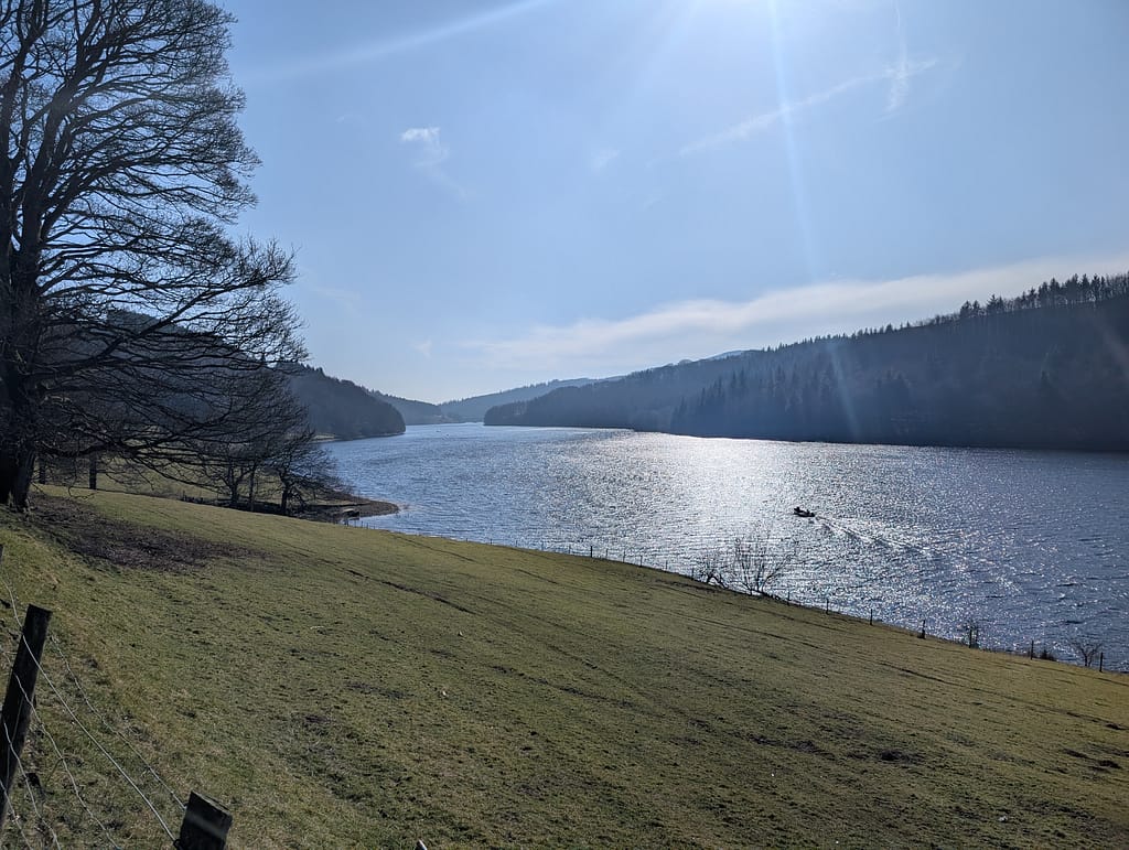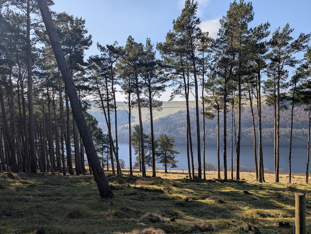 If you follow the footpath north and do not climb up on to Derwent Edge you can descend to the reservoir after about a kilometre. Turn left towards the woodland above Ladybower.